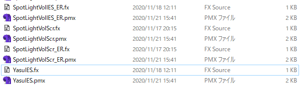 各追加ライトはさらに細分され、属性名がpmxファイル名の後ろにつけられています