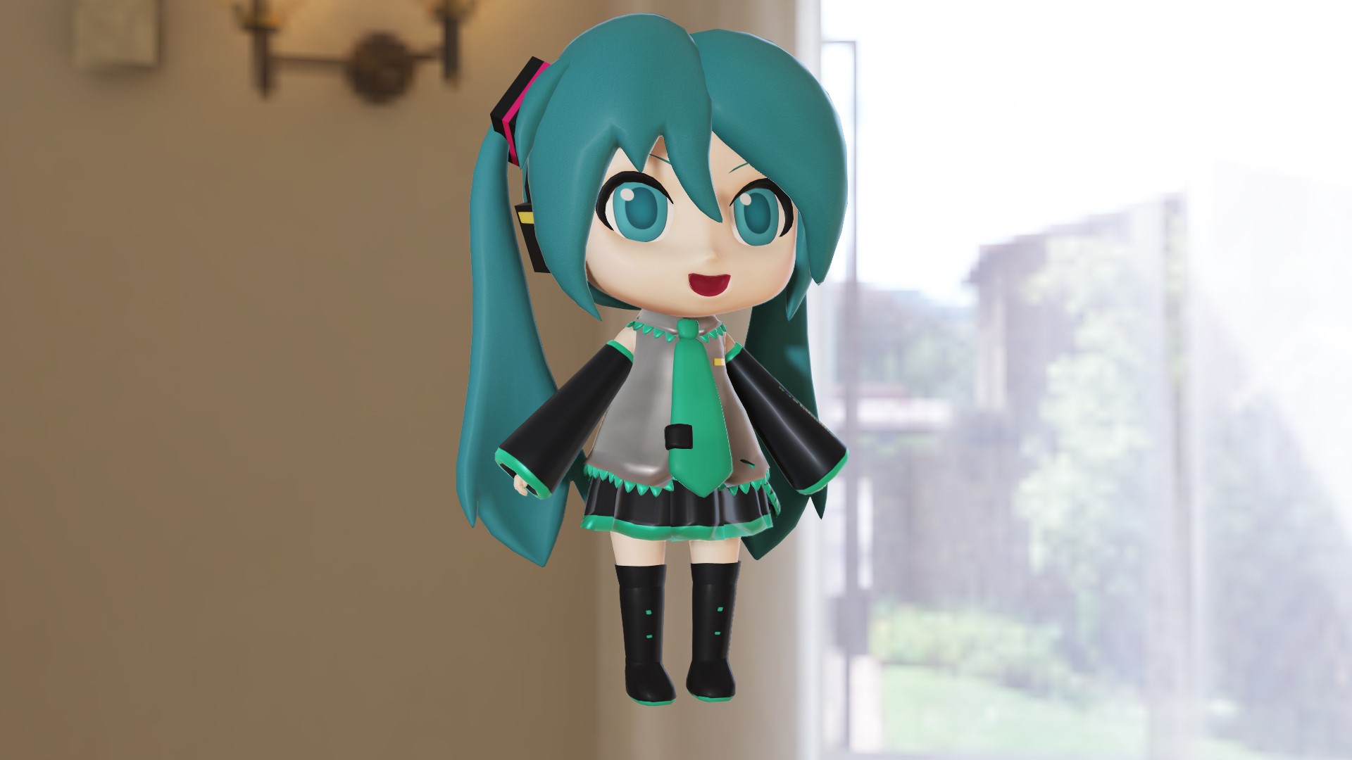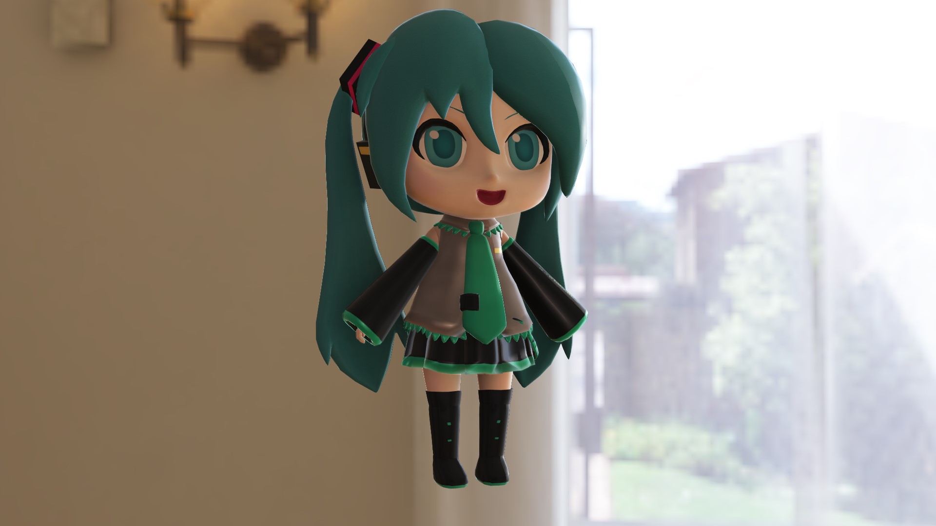 口絵にはすず式ミクダヨーさんをお借りしました。ありがとうございます。配布先はリンクをどうぞ!この例では左右で光源の向きが逆に設定されています。左は採光のための窓が多方向にあったり、十分な広さがあるなど開放的な印象を与えるかもしれません、右は窓が画面に出ている範囲より少し広いくらいかな?という感じで、画面に映っている物だけから判断できる内容としては腑に落ちる印象を与えると思います。想定しているシーンの内容によってどちらが正しい光源の設定なのか?という事は変わりますが、skyboxの光源の向きとMMDの光源の向きが違うと絵から受ける印象が大分変わるという例でした。