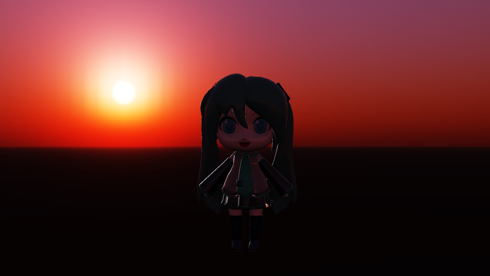 ここまでは全く一緒ですが、DayDynamicSkyboxはMMDの光源の向きを変えると太陽の高さが変わります。これに合わせて環境マップの中身も書き換わるので、skyboxの明るくなっている部分と光源の向きが自動的に合って背景と整合性のあるライティングにしやすいです。色は手動で合わせないといけませんが、向きと比べると見た目に分かりやすいので忘れづらいかなと。